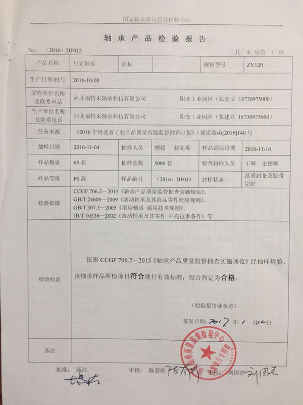 河北富特來軸承科技有限公司產(chǎn)品質(zhì)量通過國家軸承質(zhì)量監(jiān)督檢驗(yàn)中心監(jiān)督抽查